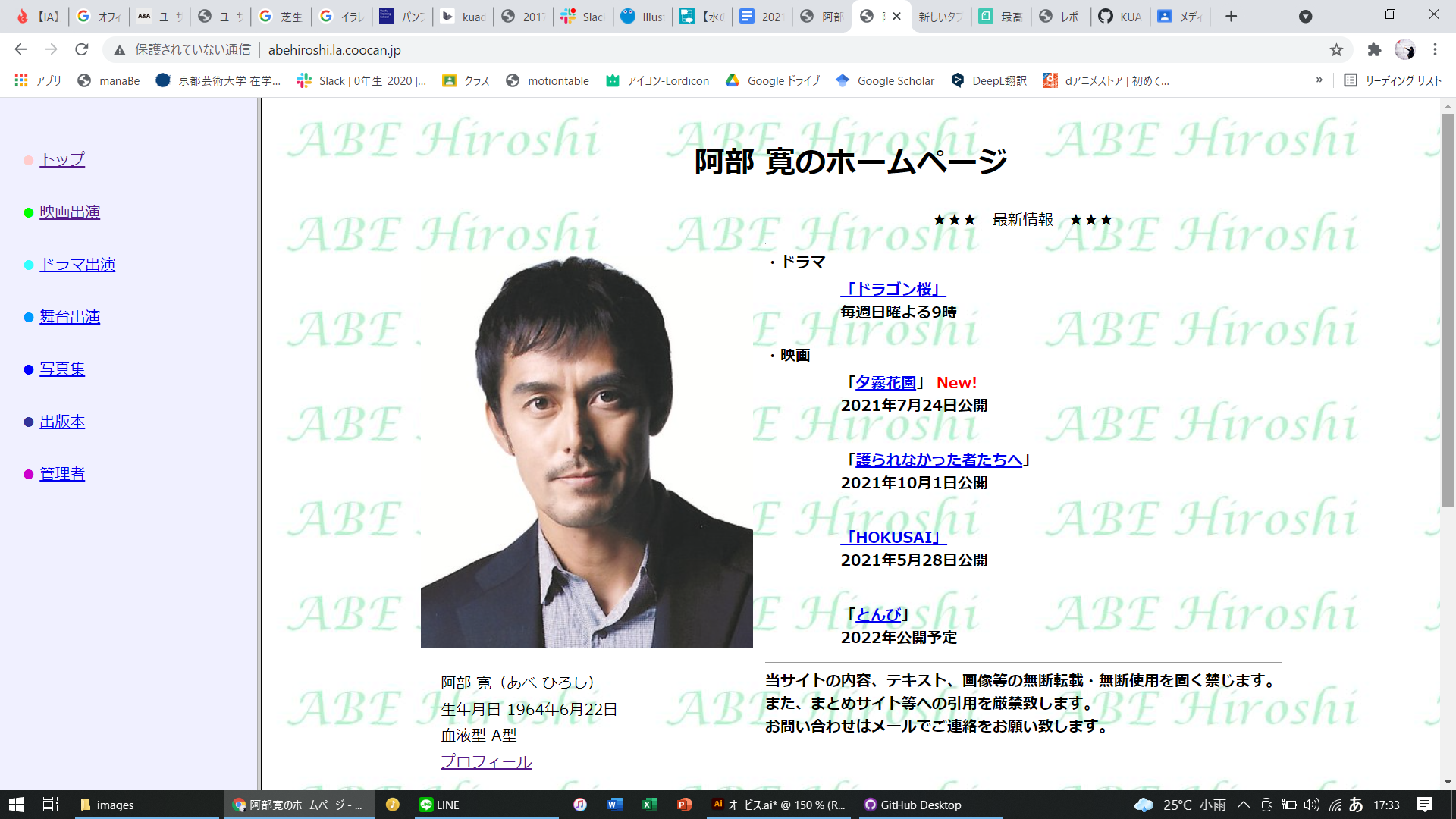 阿部寛の出演作品等々が記載されたサイト